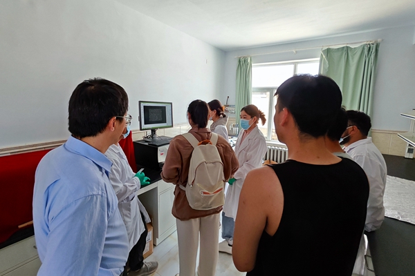 随后调研团成员来到生活区的冻精加工生产与品质分析实验室进行参观。内蒙农大澳门六合彩高手 动物遗传育种与繁殖系,在绵羊、山羊冷冻精液生产加工、保存使用等领域深耕多年,在冷冻条件、稀释液配方、输精技术等方面取得诸多成就,先后尝试在稀释液中添加海藻糖、大豆卵磷脂、褪黑素等用于提升精子活力,解冻后精液活力可达70%以上。现已构建成采精-制管-冻存-复苏-输精全套技术体系,并在自治区进行产业化推广。内蒙农大科研助理徐冰冰老师,向队员展示了冷冻精液复苏和品质鉴定全过程。队员对冷冻精液相关设备操作和技术要点进行系统学习,对冷冻精液技术发展有了更加清晰的认识,明确了学科使命。