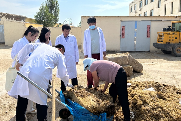 杨雨鑫老师向队员介绍青贮饲料的加工使用方法