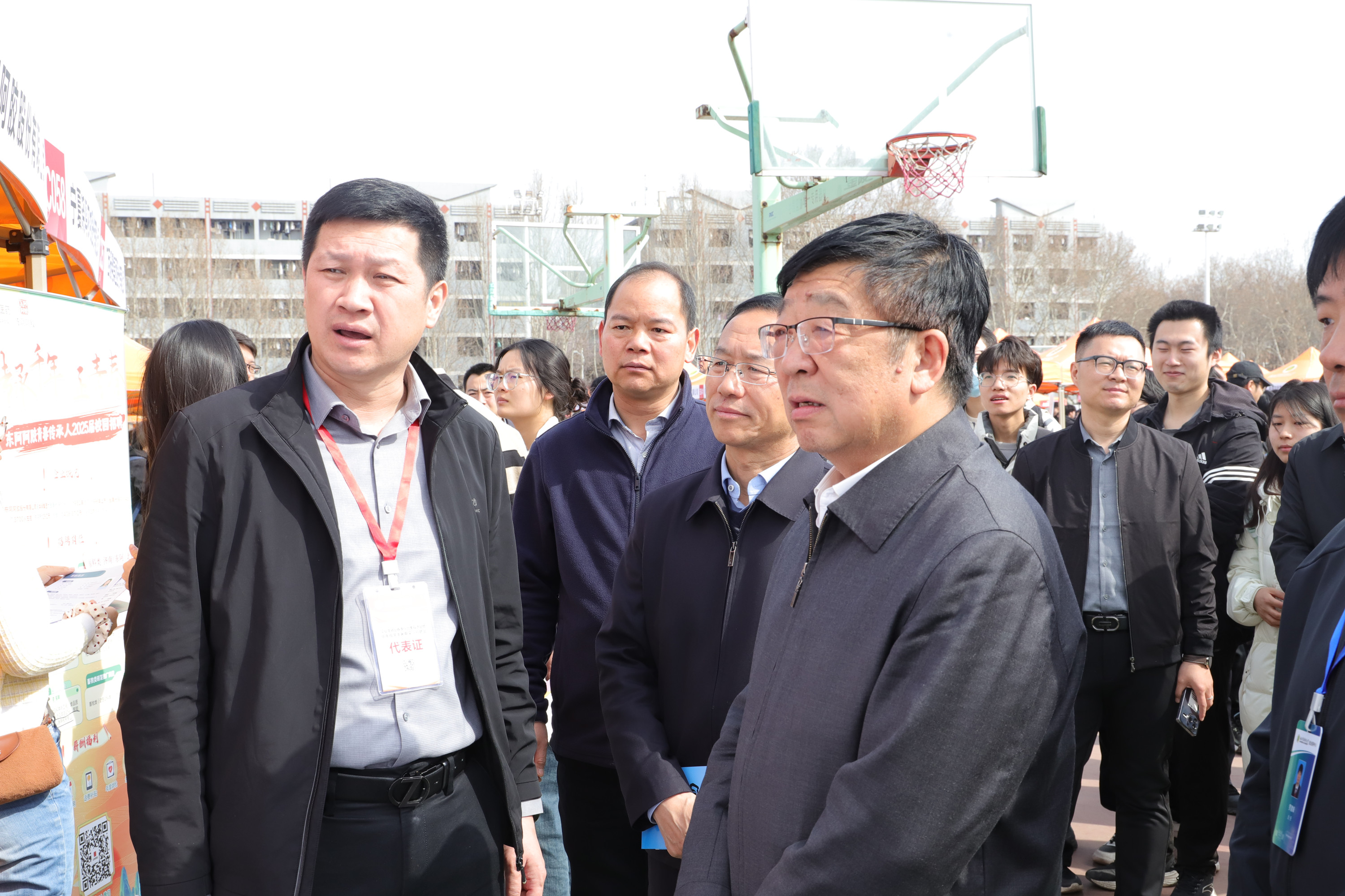 3月22日上午,学校春季综合类双选会暨低年级学生暑期实习招聘会在南校区田径场举办,澳门六合彩高手 党委书记曹军会,副书记丁天生,辅导员张宇、师筝、刘瑞亮、王嘉欣、彭治骞、李翔宇来到现场,同与会用人单位洽谈交流,为求职毕业生做就业指导、为低年级学生做职业规划。50余家行业内知名企业参加了本次双选会,他们带着优质岗位、福利高薪来到春暖花开的西农校园,为广大毕业生提供就业资源、提振求职信心。