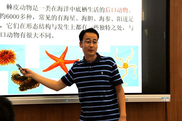 安小鹏老师讲解了我国奶山羊产业的发展概况,关中撒能奶山羊的历史地位,奶山羊育种专家刘荫武教授身上体现的“西农精神”。刘韬老师用形象的比喻讲解了MHC分子的功能,如何用四两拨千金的方式挖掘事物的本质。刘艳利老师一步一步讲解了蛋白质在动物体内的消化过程,以及通过营养措施减少养殖业对环境的危害,提高了大家对环境保护的认识。张俊老师播放了他导师多年前制作的瘤胃微生物的视频,以鲜活的事例展示了为师之道的精神传承。李安宁老师以海星为例详细讲解了棘皮动物门的主要特征,图文并茂展示了海星的水管系统。王永亮老师通过猪担任“缉毒员”加深大家对猪的生物学特性理解。王二龙老师利用新冠病毒及疫苗引出要讲授的水产疫苗的种类及特点,提高了课堂的学习兴趣。