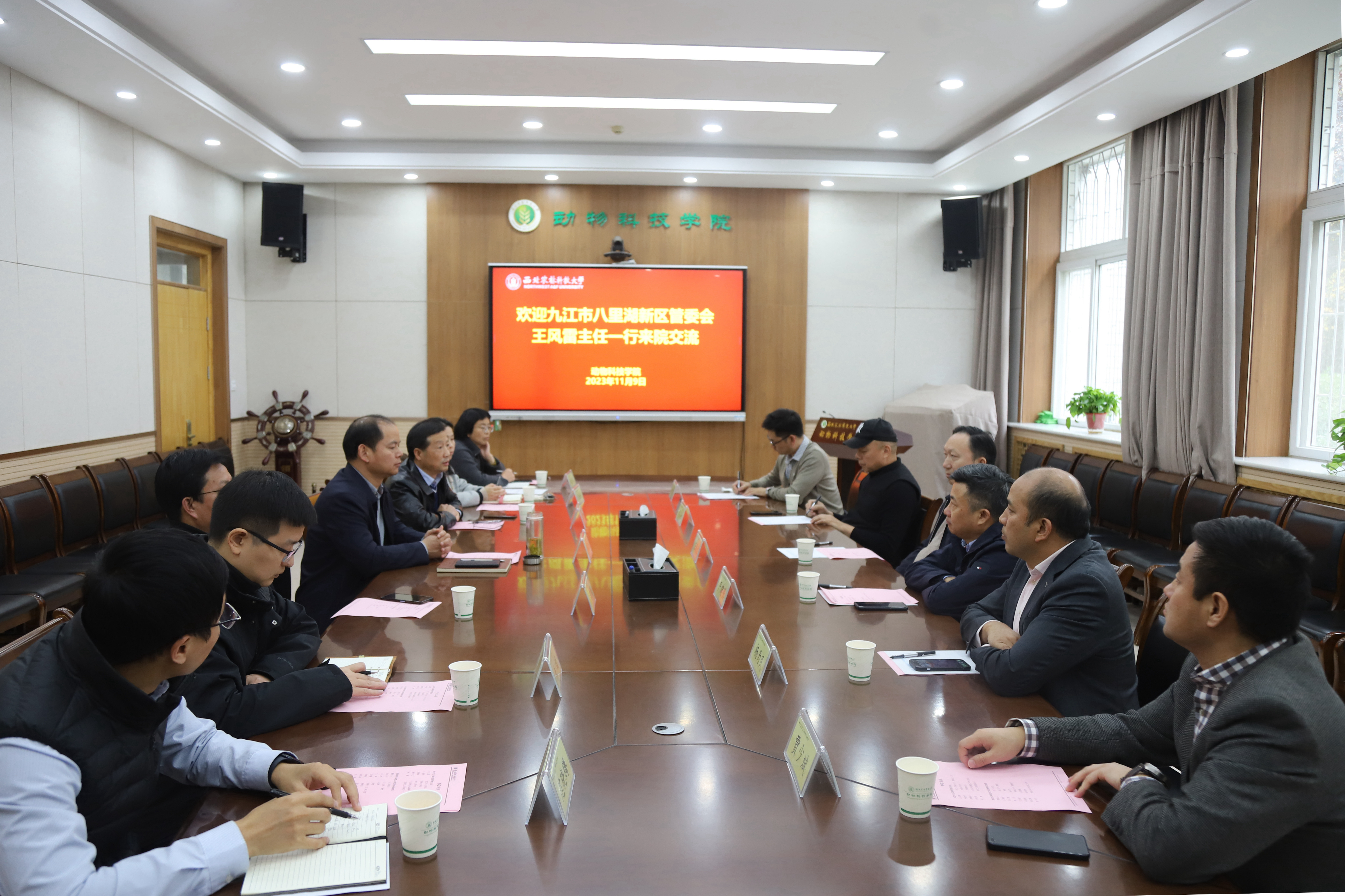 11月9日下午,九江市八里湖新区党工委副书记、管委会主任王风雷一行来院洽谈合作。澳门六合彩高手 党委书记曹军会主持会议,水产科学系部分教师参加会议。