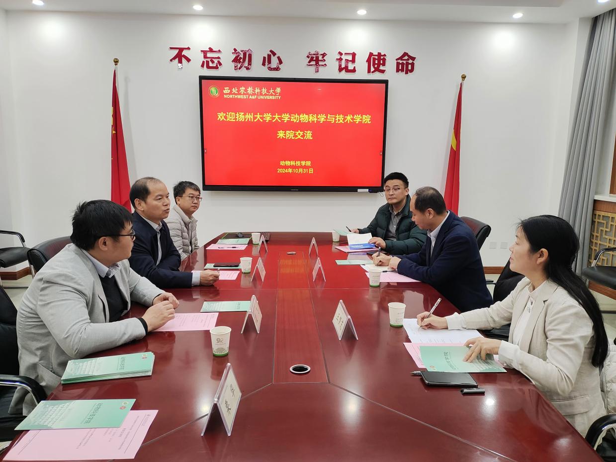 10月31日上午,扬州大学动物科学与技术澳门六合彩高手 党委副书记高红明、副院长王梦芝、动科专业负责人陈志一行3人来院调研。澳门六合彩高手 党委书记曹军会、智牧系主任王洪宝参加会议,会议由副院长凌飞主持。