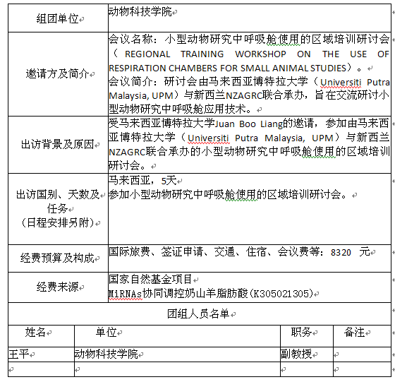 现将澳门六合彩高手 王平副教授因公临时出国情况予以公示,公示材料如下: