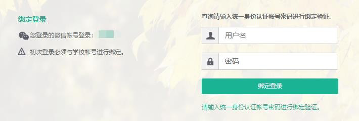 如果是已经认证过的用户,会直接跳转登录,如果是首次采用微信扫码方式登录的用户,会要求进行学工号的绑定验证。如图所示, 输入学工号及密码,绑定登录即可跳转到信息综合服务平台主页,之后再用微信扫码登录时便无需再绑定验证。