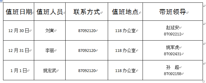 注:1. 值班时间:上午8:30—11:30,下午3:00—6:00