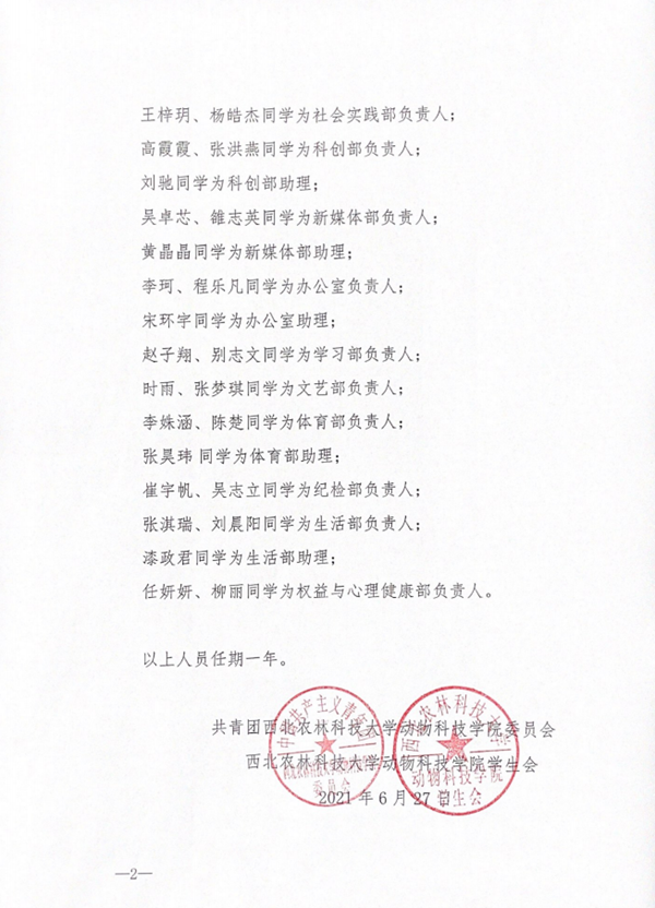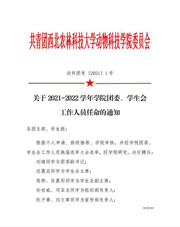 澳门六合彩高手 2021-2022学年团委、学生会学生工作人员任命的通知