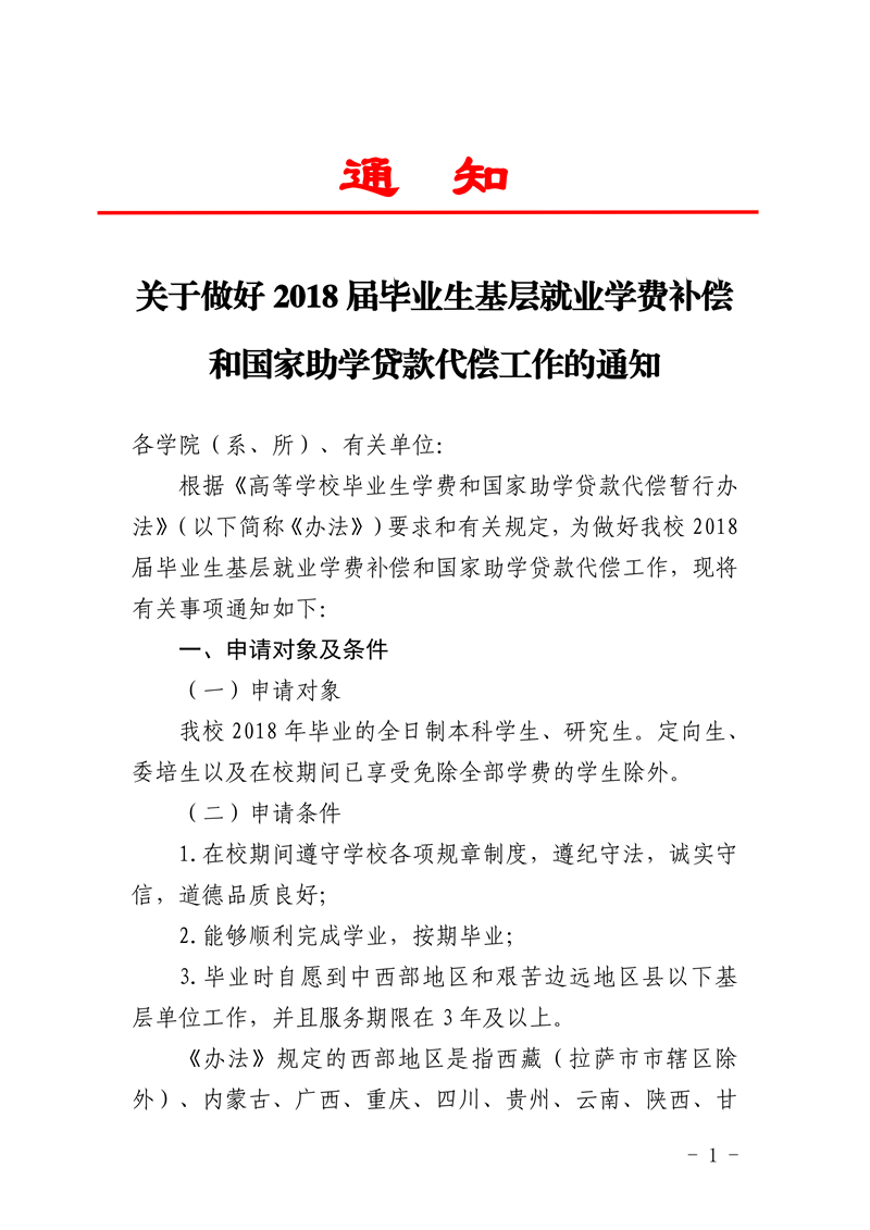 关于做好2018届毕业生基层就业学费补偿和国家助学贷款代偿工作的通知
