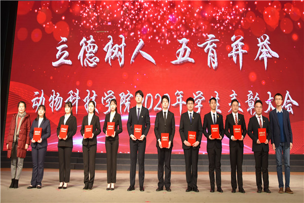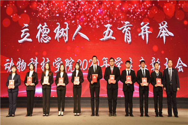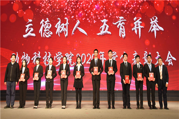 党委书记曹军会为“院级优秀大学生”“优秀学生干部”获奖代表颁奖
