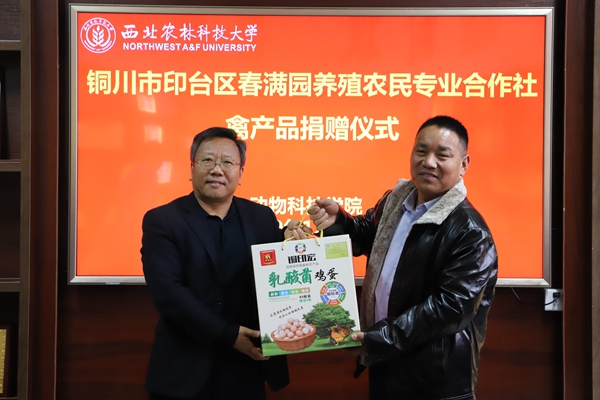 李景河在讲话中表示:感谢家禽健康养殖创新团队高玉鹏教授、闵育娜副教授、王哲鹏副教授一直以来在蛋鸡饲养管理、饲料营养和疫病防控等方面手把手的技术指导,并选派研究生长期驻场进行蛋鸡无抗养殖试验和品牌蛋的研发,这些工作使合作社蛋鸡养殖真正实现了全程饲养无抗,蛋品质优良得到消费者广泛认可,2020年获批了陕西省农业农村厅科技创新集成推广项目;同时“合作社+基地+农户+科技”的产业化经营模式,成为带动周边农户脱贫致富的典型,闵育娜副教授作为国家蛋鸡产业技术体系杨凌综合试验站站长也因其在产业扶贫方面的突出贡献入选了2020年国家农业农村部科教司组织编写的《体系专家扶贫风采录》。此次回馈澳门六合彩高手 是正是对澳门六合彩高手 和老师们的感谢,希望后期双方在人才培养、学生实习实践等方面进一步加强合作,让校企合作之花绚丽绽放。