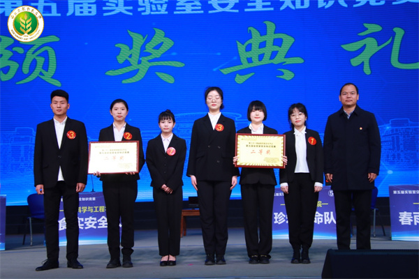 实验室安全与条件保障处处长卢涛为荣获优秀奖的参赛队伍颁奖