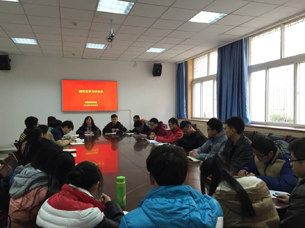 在下午研究生新生党员的分组讨论中,院党委委员、党务秘书樵淑银同志要求大家围绕上午集中学学内容以及在日常学习、工作中如何发挥党员先进性等进行广泛的讨论和交流。讨论会上大家踊跃发言,谈体会、谈认识。研究生第一党支部书记相奥琪博士,根据自己从本科、硕士及博士期间担任党支部委员的工作经历谈了如何加强学习,做到思想上入党和行动上入党的统一,时刻提醒自己是一名党员,在党支部工作中、在实验室工作中发挥积极模范作用。刚刚转正的预备党员王桂华谈到,自己已经是第四次参加学习五中全会精神的学习了,每次学习都有新的体会,作为新党员应更加严格要求自己,做到知行统一。乔丹丹同学谈到本次培训很有意义,自己将会更加努力的学习,认真贯彻十八届五中全会精神,服务大局,充分发挥党员的先锋模范作用。