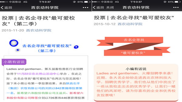 “西农澳门六合彩高手 ”微信平台标志是小动物卡通形象好奇的透过窗子眺望外面的世界,寓意不断求索、勇往直前,提高了辨识度。平台把编辑昵称为“小萌”,把新生昵称为“小动物”,增强了动科大家庭的亲和力。