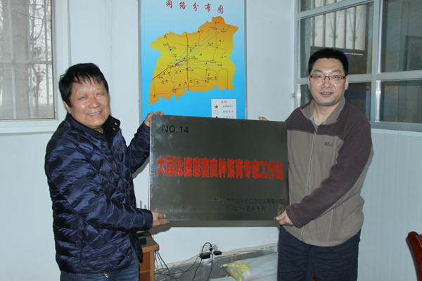 渭南市人才办公室刘永辉主任给大荔众康家畜良种繁育专家工作站授牌