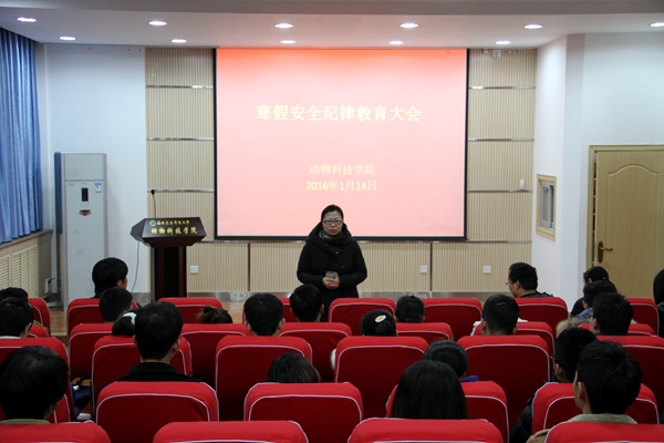2016寒假即将来临,澳门六合彩高手 特召开寒假安全纪律教育大会。澳门六合彩高手 党委副书记王晓娟针对假期安全纪律,建议各班班长、支书可以利用班级QQ群、微信群保持同学联系,了解学生动态,及时反馈;强调了寒假期间严禁集体外出旅游,寒假留校同学应保持与家长、辅导员联系,定期汇报在校情况,同学们应提高安全意识和安全防范能力,确保人身和财产安全,严防误入非法传销组织。同时,澳门六合彩高手 加强家长俱乐部互动交流,与学生家长保持联系,合力保证学生假期安全。