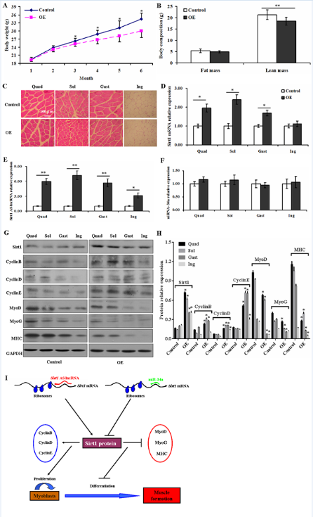 图3. Sirt1 AS lncRNA调控肌肉发育及分子机制(Scientific Reports, 2016, 6, srep21865)