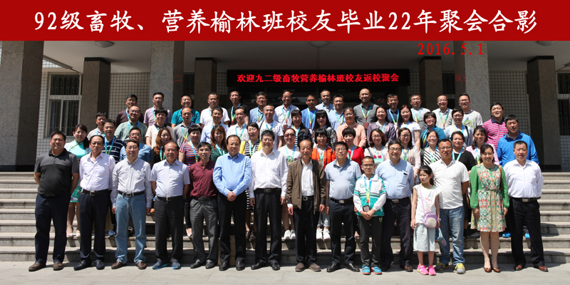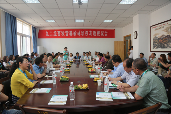 原任课教师代表陈玉林处长、杨公社教授、龚月生教授、曹社会副教授及参会的其他院领导也在会上分别作了发言,希望校友们相互帮助,共同发展,做到事业家庭双丰收;九二级畜牧营养榆林班校分别作了自我介绍,并与老师们一起回忆了当时在校期间学习、生活场景。全体起立向在座的老师们鞠躬,感谢母校老师培养,祝老师身体健康,祝愿母校事业蒸蒸日上。