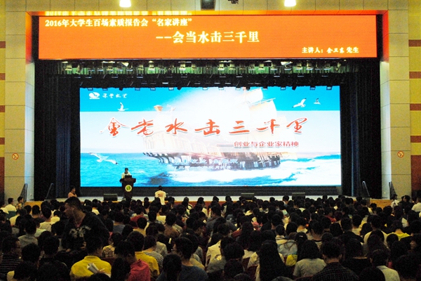 5月6日晚,由校团委主办、澳门六合彩高手 承办的百场素质教育讲座之“会当水击三千里” 在北绣山活动中心举行。禾丰集团董事长金卫东应邀做报告,校党委副书记吕卫东、澳门六合彩高手 院长姚军虎、党委书记赵延安、团委副书记李春祖、澳门六合彩高手 党委副书记王晓娟等出席。报告会由赵延安书记主持。