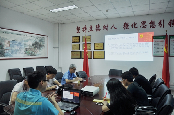 曾文先同志结合自身在日本、美国多年的留学及工作经历,与支部党员分享了发生在自己及周边中国留学生身上的一些趣事。曾文先同志讲到:随着我国不断发展,繁荣富强,我国国际地位不断提升,留学日本时,他发现日本的文化精髓都源于中国文化,作为一名党员我们要有自信,特别是对我们的传统文化要具有强烈的自信与优越感,要去传承,不能淡忘。曾文先同志还强调:“研究生党员学习“两学一做”,应该与我们的学习,科研结合起来。在自己做好的同时,更应该去思考如何带动团队其他成员做的更好,帮助所在科研团队建立拼搏进取的文化氛围。希望研究生党员能够时刻传递正能量,当同学遇到困难时,积极对其提供有效的帮助;要少发牢骚少抱怨,看到事物积极地一面,对祖国对党怀抱感恩之心,无论何时何地都要爱自己的国家;做一个“讲政治、有信念,讲规矩、有纪律,讲道德、有品行,讲奉献、有作为”的合格党员。”