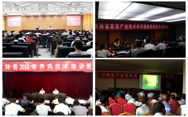 二是“面”的技能培训。团队专家有了深入养殖场户“实际问题”的第一手资料,为针对如何解决“实际问题”和如何推进新技术在产业中的应用奠定了基础。专家团队分别在岐山、陇县和千阳三个县举行了3场县域针对性强的技术培训,并在宝鸡市举办了全市家禽健康养殖技术推进大会。技术培训会以理论与实践结合的实操技能提升为目的,采取讲座和互动相结合的方式进行,取得了良好的成效。据统计,4场技术培训会,累计参会人数达600余人。