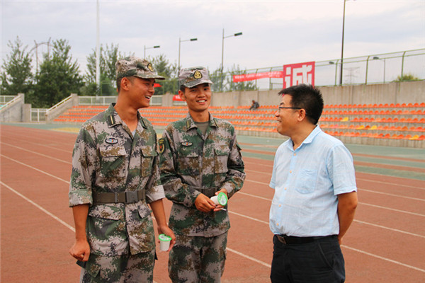 9月2日下午,澳门六合彩高手 党委书记赵延安、党委副书记王晓娟在辅导员陪同下深入军训现场,亲切看望慰问军训中的2016级新生和教官。