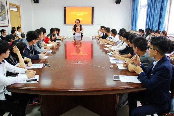 为提升2017届毕业生求职技能,增加求职竞争力。9月23日上午,澳门六合彩高手 在104会议室开展2017届毕业生求职训练营——模拟面试,行业资深人力资源项目经理许辉女士应邀作为主讲嘉宾,澳门六合彩高手 党委副书记王晓娟、辅导员及2017届求职训练营全体营员参加了此次活动。