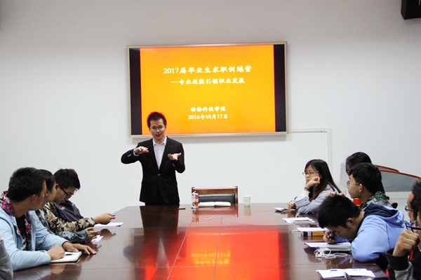 为提升2017届毕业生求职技能,掌握就业新方向。10月17日晚,澳门六合彩高手 在104会议室举办2017届毕业生求职训练营——专业技能引领职业发展座谈会,澳门六合彩高手 2016届优秀毕业生、广西扬翔股份有限公司人力资源部招聘专员陈令祥担任主讲人,2017届求职训练营全体营员参加了此次活动。
