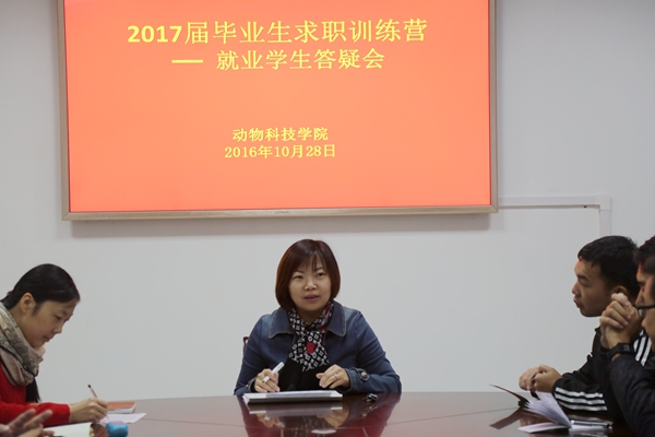 前期,澳门六合彩高手 领导、辅导员深入学生宿舍,通过与2017届毕业生一对一交流,了解求职学生就业意向和签约情况,46名就业意向学生中,32名学生通过参加近期的各类招聘会已经应聘成功或等待签约,7名学生准备公务员考试,7名学生就业方向还不确定。王晓娟副书记根据前期约谈询问、走访调查结果,详细解答每位学生在求职中遇到的难点与疑问,尤其是针对少数民族、求职意向模糊、公务员考试等学生的个性化化问题进行详细解答。王晓娟副书记结合自己多年的工作经验,强调“我们的专业就是我们的特长”,鼓励同学们从基层做起,掌握技术,积累经验,增强自己的不可替代性;树立正确的职业价值观,在工作地域、岗位类型、薪资待遇、个人发展等方面选择时,结合自身爱好与兴趣,选择与自己价值观念匹配并适合自己的工作岗位。草业131班祁彦文同学表示:目前自己已经拿到多家企业的录用通知,但是仍很难抉择适合自己的岗位,此次答疑会使自己明确了方向,更加坚定农牧行业的基层锻炼,提高自己专业性和不可替代性!
