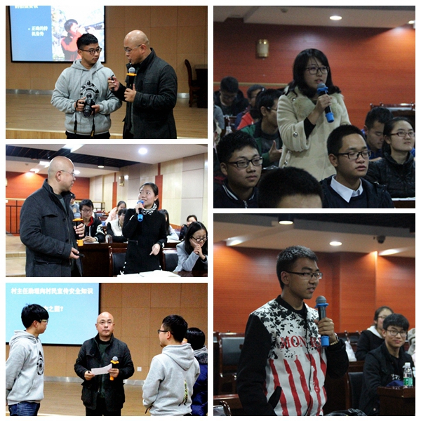 “没有新闻就没有生活。”靳军老师首先强调了新闻的重要性。靳老师指出,“心中有图,旁观者问”是新闻工作者应当时刻记住的两个要点,即注重新闻构图,以旁观者的身份提问,反复修改,就会写出好的新闻报道。谈到新闻构图,靳军老师着重强调了心中有图的重要性,引导学生如何构思活动前的构图场景,并根据现场条件灵活调整找到最佳角度及瞬间,如何避免无效图片,并结合学校新闻网及学生活动中典型案例进行讲解说明,同时就会议类、比赛类、学生活动类、表彰类四大新闻活动做了具体摄影方式讲解。过程中幽默生动的与学生互动交流,就拟定的新闻场景提问同学们心中的摄影构图,在场同学积极思考,踊跃发言,氛围活跃。靳老师结合学生活动新闻稿做出点评并就活动新闻稿提出宝贵意见,鼓励学生作为学生新闻记者,应当增强新闻稿的概括能力,注重新闻摄影的主题突出性和语言逻辑性,以追求新闻宣传质和量的飞跃。
