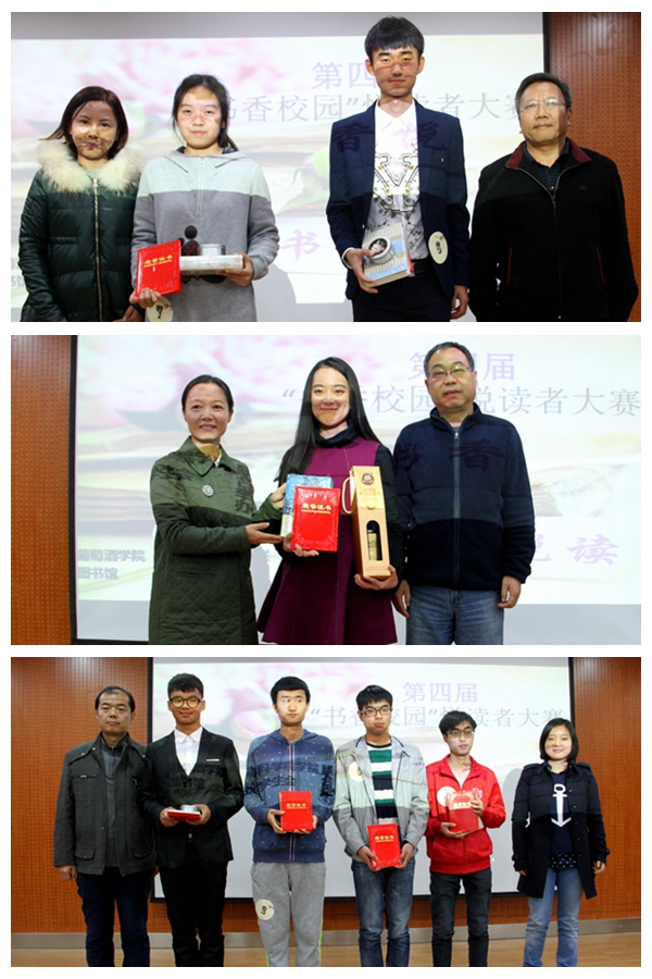 自10月18日起,“书香校园”悦读者大赛陆续开展“书香满月”、“名家讲座”、“美酒遇上书”、“书海千帆”等活动,历时一个月的“书香校园”悦读者大赛决赛在食品楼六楼报告厅举办。马克思主义澳门六合彩高手 教授方建斌、马克思主义澳门六合彩高手 副教授胡尊让、图书馆党总支副书记赵运良老师、人文澳门六合彩高手 刘娟老师、就业指导中心副主任白金凤老师、学生处副处长马宁老师、校团委副书记师燕妮老师以及葡萄酒澳门六合彩高手 党委副书记邓亚丽老师应邀出席并担任本次决赛评委。经初赛、复赛共10名学生进入决赛,澳门六合彩高手 草业162班薛志鹏荣获二等奖,动科152班蔡魌健荣获三等奖,草业162班孙鹏越获得优秀奖。