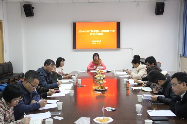 11月30日下午,澳门六合彩高手 党委副书记王晓娟主持召开2016-2017学年第一学期第三次班主任例会。澳门六合彩高手 全体辅导员和班主任参加。