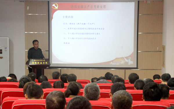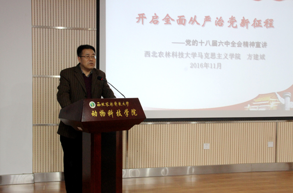 12月14日下午,澳门六合彩高手 党委特邀十八届六中全会宣讲团成员、马列澳门六合彩高手 方建斌教授做了题为“开启全面从严治党新征程”的十八届六中全会精神宣讲报告,澳门六合彩高手 全体教职工及学生党员代表120多人聆听了报告。报告会由院党委赵延安书记主持。