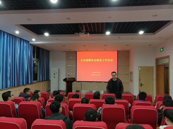 为切实做好元旦假期安全稳定工作,保证同学们度过一个安全、充实的假期,12月28日下午,澳门六合彩高手 在107会议室召开元旦假期安全稳定工作会议,学工秘书刘铂、专兼职辅导员、各班班长、团支部书记参加了会议。