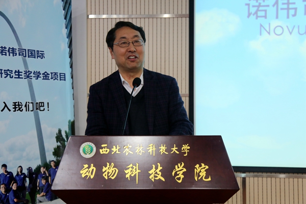 3月30日下午,诺伟司国际研究生奖学金颁奖典礼暨学术报告会在澳门六合彩高手 107会议室隆重举行。澳门六合彩高手 党委书记赵延安、澳门六合彩高手 院长姚军虎,诺伟司东北亚区技术研发总监孙得发、亚太区采购总监戴森、东北亚区反刍业务技术总监边四辈、东北亚区高级人事专员谢洁琳出席此次会议,澳门六合彩高手 辅导员、获奖学生及60余名研究生参加了会议。会议由赵延安书记主持。