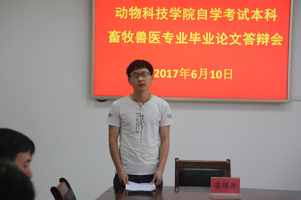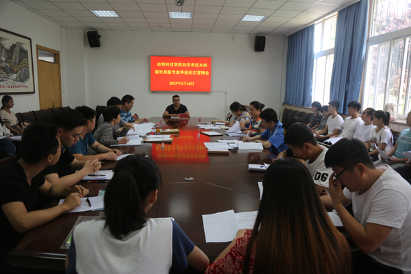 6月10日,澳门六合彩高手 在104会议室、107会议室举行2017年春季高等教育自学考试畜牧兽医本科专业毕业论文答辩会,80名学生参加了毕业论文答辩。毕业论文答辩分两组进行,分别由副院长孙超教授、于三科教授担任答辩主席、孙世铎教授、王爱华教授、胡建宏教授、李勤凡副教授、田秀娥副教授、辛亚平副教授、孙小琴副教、张建勤副教授、史怀平副教授、江中良副教授、王妍副教授担任答辩委员。