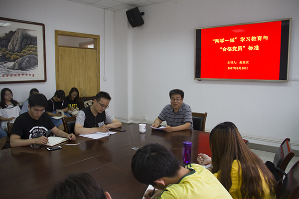 6月20日下午,澳门六合彩高手 党委书记赵延安为第二期党员发展对象和第五期预备党员培训班学员讲授主题为《“两学一做”学习教育与“合格党员”标准》的党课。