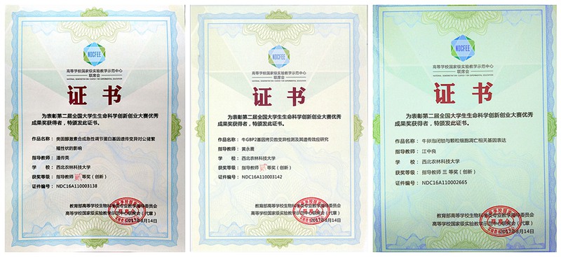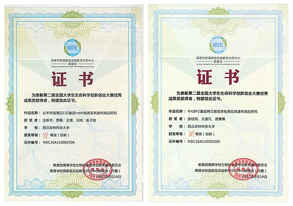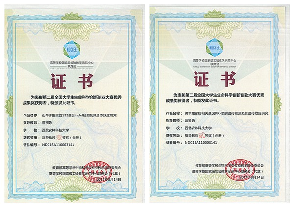 经过激烈角逐,澳门六合彩高手 蓝贤勇教授指导的2013级本科生王新宇团队(王新宇、罗静、王煜、冯琦、张子晗)的参赛作品《山羊锌指蛋白132基因indel检测及其遗传效应研究》获第二届全国大学生生命科学创新创业大赛一等奖;潘传英副教授指导的2014级本科生张阳海团队(张阳海、李永、曹迪、鱼婷、高佳阳)的参赛作品《类固醇合成急性调节蛋白基因遗传变异对公猪繁殖性状的影响》、黄永震讲师指导的2014级本科生张桂民团队(张桂民、文逸凡、逯倩倩)的参赛作品《牛GBP2基因拷贝数变异检测及其遗传效应研究》、蓝贤勇教授指导的本科生李洁团队(李洁<创新>、朱熙春、刘璐、张效禹)的参赛作品《绵羊瘙痒病相关基因PRND遗传变异及其遗传效应研究》获二等奖,江中良副教授指导的创新澳门六合彩高手 的本科生郑宇新团队(郑宇新、葛莹)的参赛作品《牛卵泡闭锁与颗粒细胞凋亡相关基因表达》获三等奖。同时,蓝贤勇老师分别获指导教师一等奖和二等奖,潘传英和黄永震两位老师获指导教师二等奖,江中良老师获指导教师三等奖。