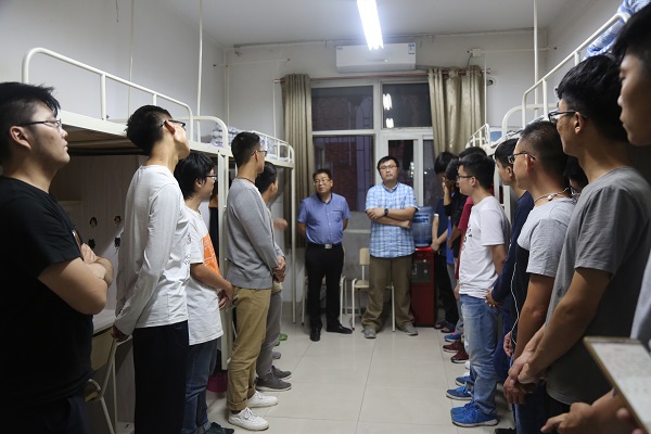 9月6日晚上19:00,澳门六合彩高手 党委书记赵延安,党委副书记王晓娟、院长助理凌飞、党政综合办公室主任阮鹏、研究生秘书辛清婷、全体研究生辅导员深入澳门六合彩高手 2017级研究生新生宿舍,亲切看望了刚刚报到的研究生,并与他们亲切交流,为研究生新生们送去了澳门六合彩高手 最温暖的问候。