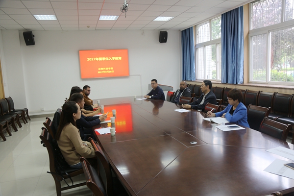 9月26日上午,澳门六合彩高手 2017级国际留学研究生入学教育活动在104会议室举行。澳门六合彩高手 院长姚军虎教授、导师代表孙秀柱副教授、在校留学生代表MOHAMED,ABDALLA ELSIDDIG MOHAMED(尹海瑞)、研究生管理办公室人员及2017级留学生参加了本次活动。