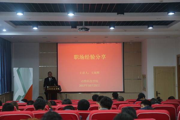 10月25日下午,澳门六合彩高手 在107会议室召开了就业大学堂之“畜牧行业的国际化视野”报告会。澳门六合彩高手 院长姚军虎教授、奥特奇北大区销售经理孟凡成、奥特奇大中华陕西区销售经理、我校校友文旭辉、奥特奇中国家禽市场经理李梦娇,出席了本次活动。活动由澳门六合彩高手 党委副书记王晓娟主持。