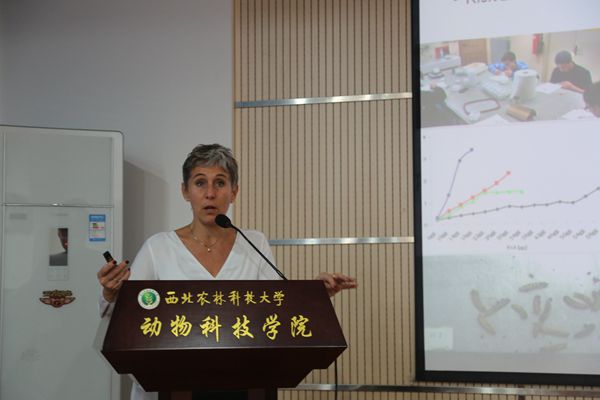 报告会上,Laura Gasco 教授首先介绍了都灵大学的历史背景及她们实验室的基本情况。她说全球普遍缺乏动物蛋白资源,而昆虫就是良好的资源,其长得快,节省空间,蛋白含量高。接着,她从昆虫资源营养特性、黑水虻养殖及其资源饲料化利用等方面做了重要介绍。报告会后与会师生就黑水虻繁殖特性、产业化发展等相关问题与Laura Gasco 教授进行了深入交流。Laura Gasco教授的报告使澳门六合彩高手 师生了解了昆虫作为饲料原料的研究概况、面临的问题和挑战。对昆虫资源饲料化利用方面有重要借鉴意义。