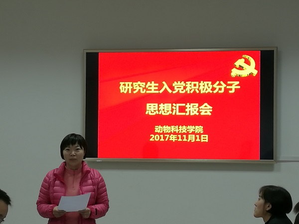 为做好2017年研究生党员发展工作,澳门六合彩高手 于11月1日在104会议室召开研究生入党积极分子思想汇报会议暨党课培训会。澳门六合彩高手 党委副书记王晓娟,党务秘书刘铂,学工秘书胡巧娟,辅导员李方龙、张涛、积极分子及各党支部代表参加了本次会议,会议由团工委副书记李亚新主持。