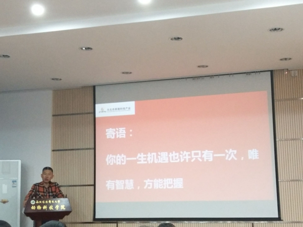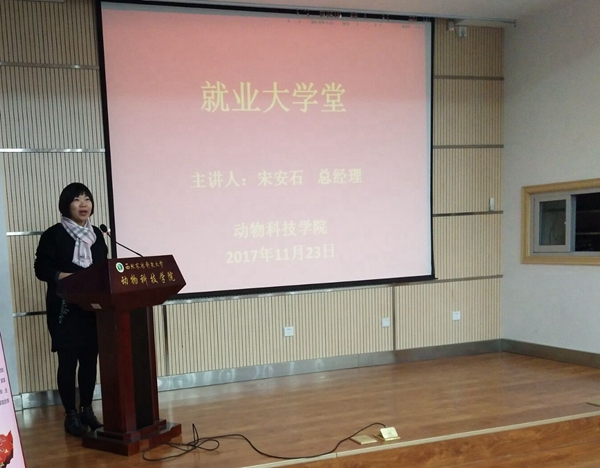 11月23日晚,澳门六合彩高手 在107室举办了就业大学堂之“我的畜牧之梦”报告会,大北农集团陕西区总经理宋安石先生、大北农集团西北、川渝养猪平台人力资源总监岳宝先生、陕西区技术总监宋志芳女士、大北农集团陕西区人力总监朱永惠女士、渭南大北农行政部经理李娜女士、大北农陕西区创业人才部主管高鹏娟女士出席了本次报告会。