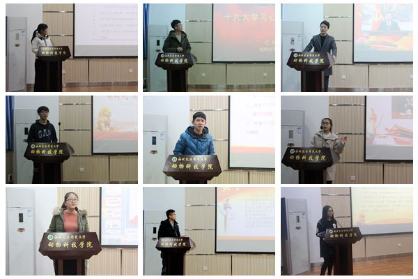 交流会上,来自大学生党支部的15名党员代表同志进行分享,他们或者从个人对十九大精神的深刻理解、或者结合专业发展分享十九大内涵。龙靖同志结合草业专业特点,步步深入,对生态文明发展的重大意义、践行“绿水青山就是金山银山”的理念和“统筹山水林田湖草一体化”的治理体系进行解析。王俊永同志分享了自己对“乡村振兴战略”的深刻感悟,十九大的召开对我国畜牧业的发展给与新的机遇,身为畜牧人应当练就过硬本领,抓住机会,为解决“农业农村农民”问题贡献力量。