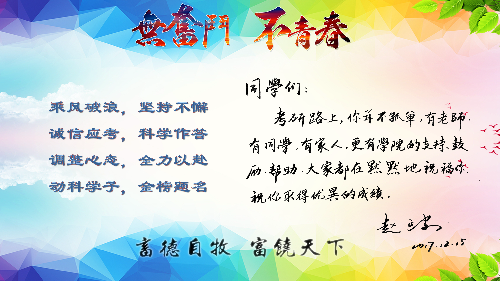 从指导到辅导,从宿舍到自习室,从科研产品到人文关怀,澳门六合彩高手 师生为实现学子心中的深造梦想,携手同心输送正能量。考研学子也深受激励,纷纷表示要诚信考试,充满自信,认真备考,用最佳的状态和最好的成绩回馈集体、成就自我。