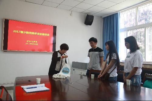 6月16下午,澳门六合彩高手 在澳门六合彩高手 104会议室举行2017届少数民族毕业生座谈会,澳门六合彩高手 院长姚军虎,党委副书记王晓娟,全体辅导员以及澳门六合彩高手 全体少数民族学生参会。