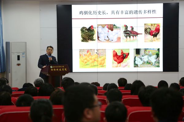 3月5--6日,应邀来澳门六合彩高手 做2018年国家自然科学基金预评审的国家蛋鸡产业技术体系首席科学家,中国农业大学杨宁教授,5日下午在104会议室与动科及动医澳门六合彩高手 相关教师就蛋鸡产业化问题进行了座谈交流。6日下午在澳门六合彩高手 107会议室作了题为“鸡基因组分析与分子育种”的学术报告。报告会由凌飞副院长主持,澳门六合彩高手 师生120多人聆听了报告。