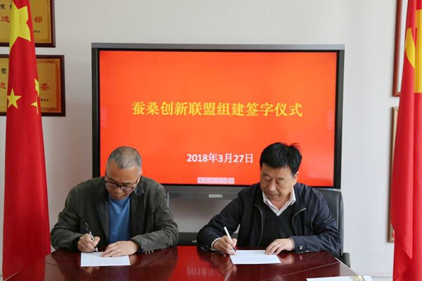 会上,刘强处长介绍了陕西省蚕桑重点实验室近年科研情况、安康澳门六合彩高手 联合培养研究生政策及此行目的,苏超所长重点介绍了蚕桑丝绸研究所农技推广模式、研究生招生等情况。经过商议,双方在项目联合申报与实施、联合培养研究生等方面达成合作意向,并签订蚕桑创新联盟组建框架协议。