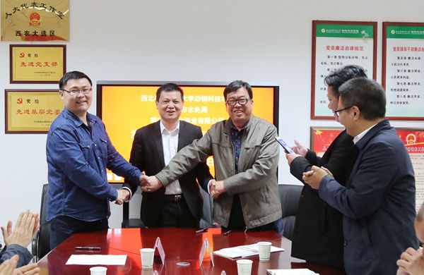 4月12日上午,澳门六合彩高手 在116会议室与韩城市水务局、韩城市聚水渔业有限公司举行渔业战略合作协议签字仪式。韩城市水务局卫战波局长、薛少红副局长、水产站吴学辉站长、韩城市聚水渔业公司付守全董事长、薛和平公司经理,澳门六合彩高手 赵延安书记、凌飞副院长、水产系王高学教授、王立新副教授等参加了签字仪式,三方就相关合作事宜进行了座谈交流。会议由澳门六合彩高手 赵延安书记主持。