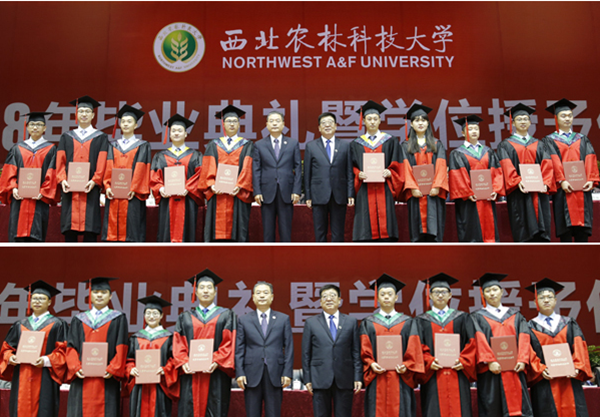 6月25日,我校2018年研究生毕业典礼暨学位授予仪式在南校区体育馆隆重举行。校党委书记李兴旺与校长吴普特共同为20名校级优秀博士学位论文获得者颁奖。学校和示范区领导及院士先后为优秀硕士学位论文获得者颁奖。
