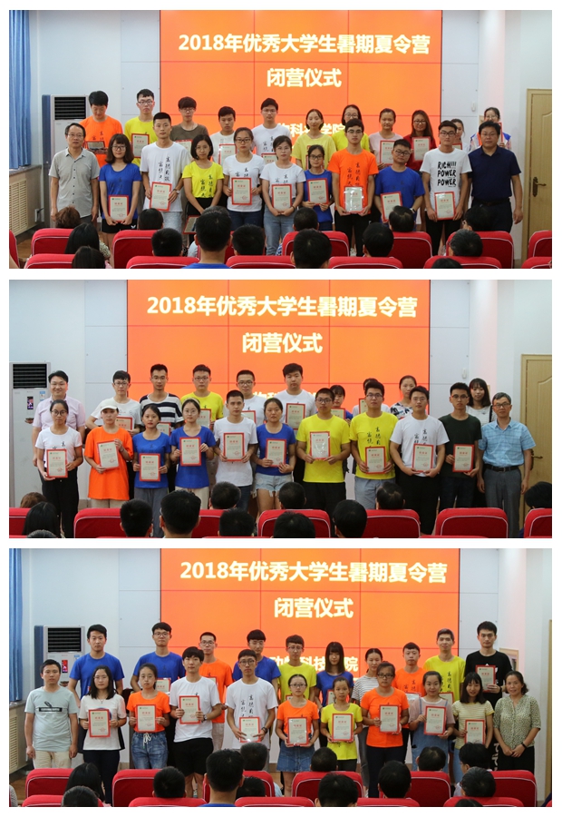 伴随着轻快悠扬的旋律,赵延安书记、王高学教授、王在照教授、胡建宏教授、王昕教授、蓝贤勇教授、董武子副教授、杨培志副教授、潘传英副教授、刘金隆副教授、成功老师分别为营员颁发了结业证书并合影留念。2018年优秀大学生夏令营活动圆满闭幕。